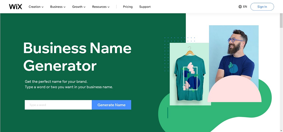 На другому місці в нашому списку найкращих генераторів назв компаній стоїть безкоштовний інструмент від Wix, популярного конструктора веб-сайтів.